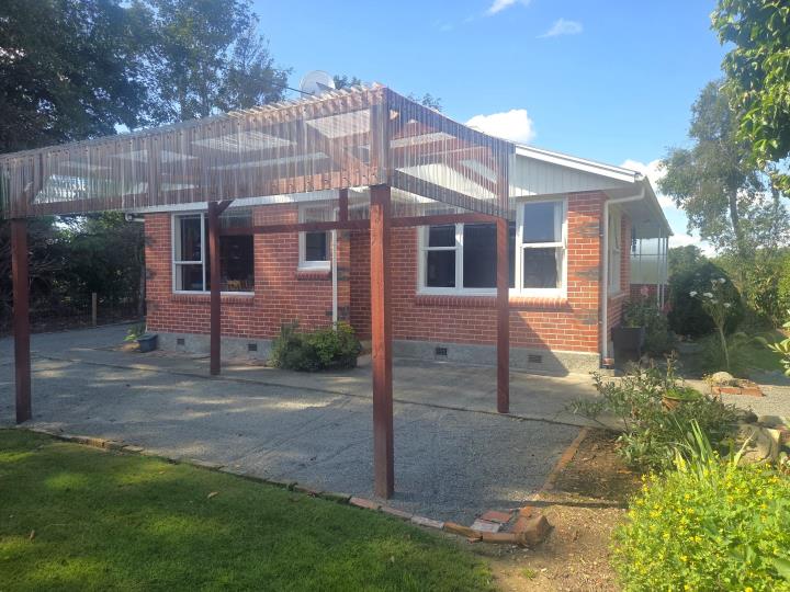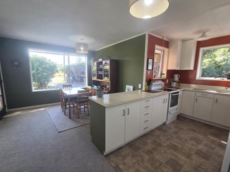 This delightful three bedroom red brick home, from the 1960s, enjoys picturesque views of the Four Peaks range and Mount Peel. With its semi-rural setting, the property offers a peaceful environment and scenic outlook. Featuring an open plan kitchen/dining/living area that blends modern and retro elements. This inviting place is efficiently heated by a heatpump and free standing log fire. The bathroom is a wet floor area, complemented by a separate toilet for added convenience. There is a dedicated laundry space located just off the kitchen. The property also boasts a single garage, a carport large enough to house a campervan as well as a separate workshop and hobbies room, both of which are powered and provide excellent flexibility for various activities. Situated on a private 809m2 section, it's conveniently located just a short drive (2.9km) from the centre of Geraldine, offering the perfect blend of rural tranquility and easy access to amenities.